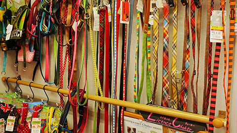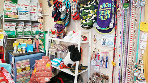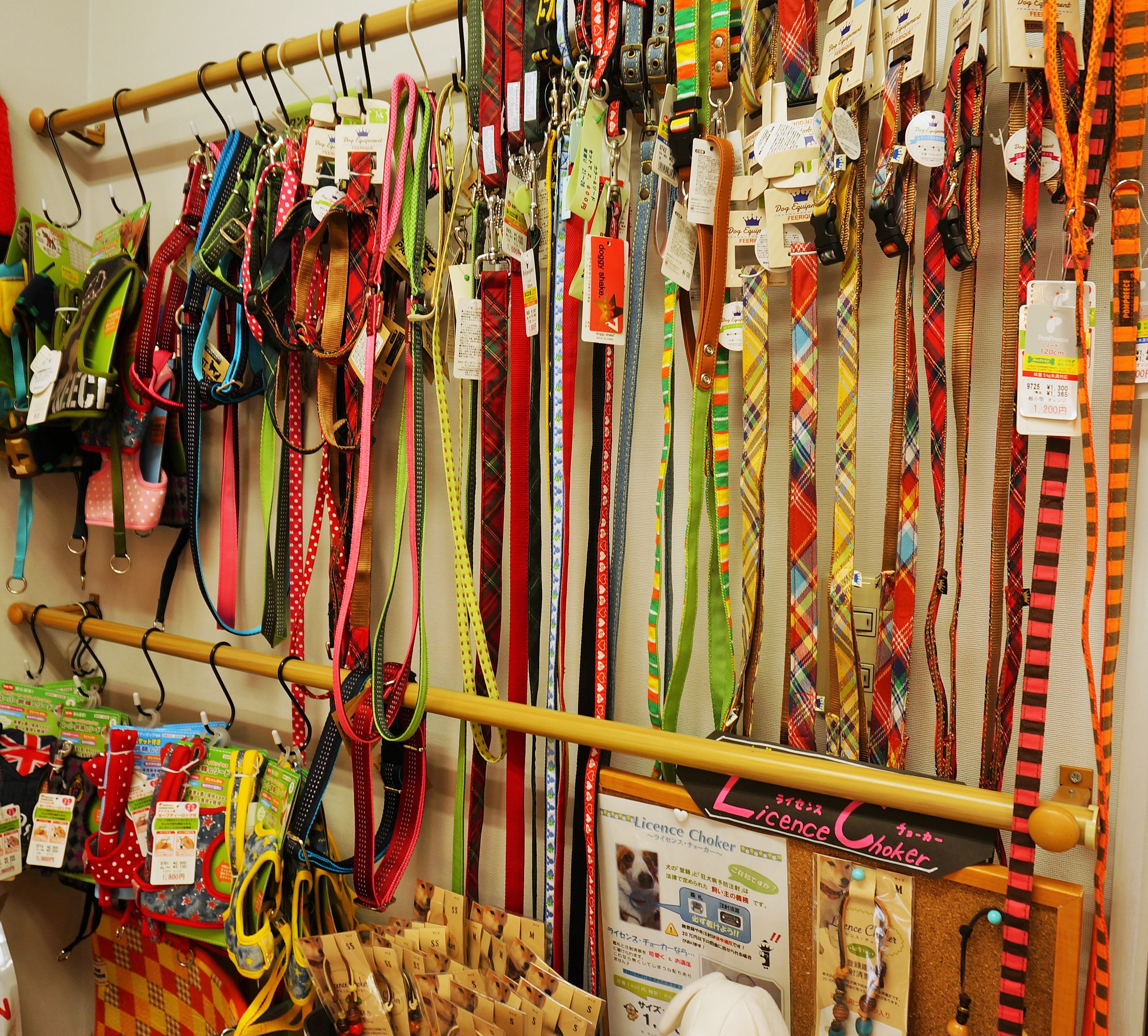 可愛いわんちゃん用の洋服や、多種多様なリードや首輪も充実。